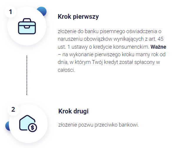 Jeśli zdecydujesz się skorzystać z naszej pomocy, czeka nas podjęcie dwóch kroków. I wcale nie dotyczy to tylko aktualnie spłacanego kredytu, ale również tych już spłaconych.