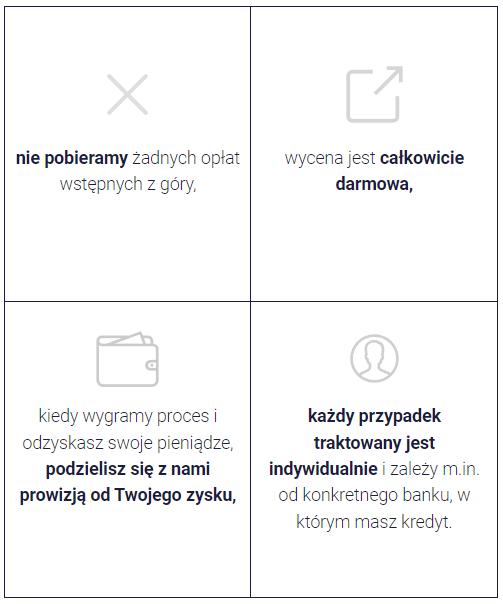Kiedy wygramy proces z bankiem i odzyskasz swoje pieniądze, podzielisz się z nami prowizją od Twojego zysku.